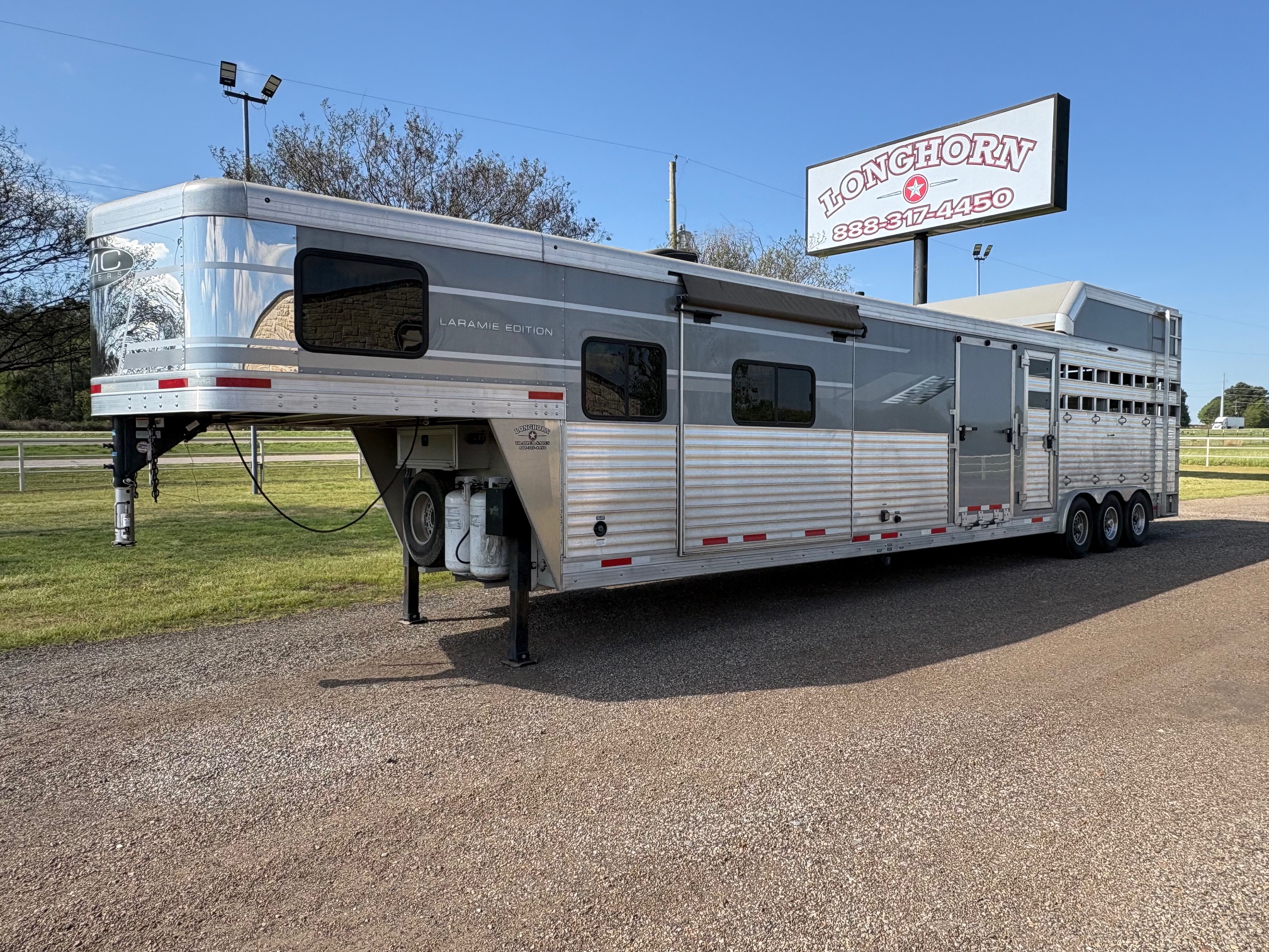 Longhorn Trailer Sales is a family-owned business. Conveniently located in the heart of Northeast Texas on I-30 in Mount Pleasant. We strive to continue growing by putting our customers first. Service and satisfaction is our main goal along with maintaining knowledge of the economics and continuous changes of the trailer business. With our constant growth, we are able to give you the best deals around.Longhorn Trailer Sales takes pride in selling top of the line new and used horse and livestock trailers. We carry a full selection of horse trailers with and without living quarters in a variety of sizes and floor plans. Check out the livestock trailers that we keep in stock with many different options.